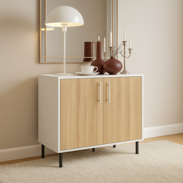 הדלתות הקדמיות יוצרות מראה אסתטי שמסתיר את כל התכולה הפנימית. העיצוב הנקי משלים בקלות כל סגנון — מודרני, סקנדינבי, כפרי או קלאסי. אפשר לבחור היכן למקם אותו והוא משתלב בצורה טבעית בכל פינה.