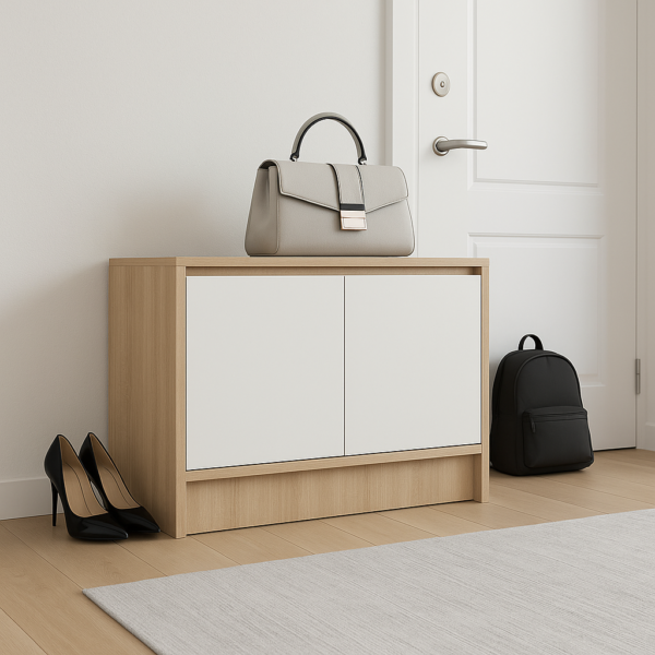 ארון נעליים A-160 המודרני הזה מוסיף לחלל הבית מראה נקי ומסודר. הוא עשוי מלמין איכותי בעובי 16 מ"מ שמעניק לו יציבות ועומק עיצובי. החומר שומר על מראה רענן לאורך זמן וממשיך לתפקד מצוין גם בשימוש יומיומי בכניסה לבית, בחדר השינה או במסדרון.