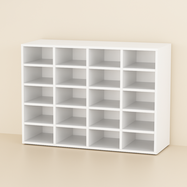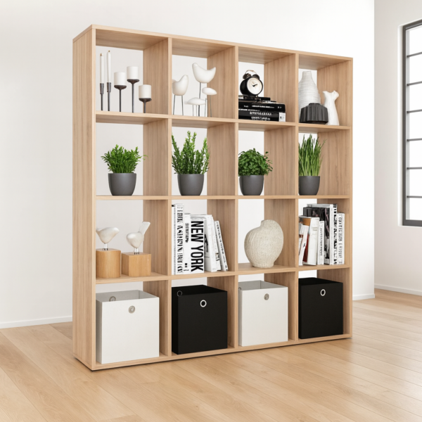 כוורת A-119 גבוהה מציגה עיצוב קלאסי-מודרני נקי ונעים לעין. המבנה המרשים שלה כולל 22 תאים מרווחים, המאפשרים אחסון נוח של ספרים, קופסאות, פריטי נוי וכל פריט שדורש מקום מסודר. החלוקה הגיאומטרית יוצרת מראה סימטרי ומדגישת את העיצוב האלגנטי של הרהיט.